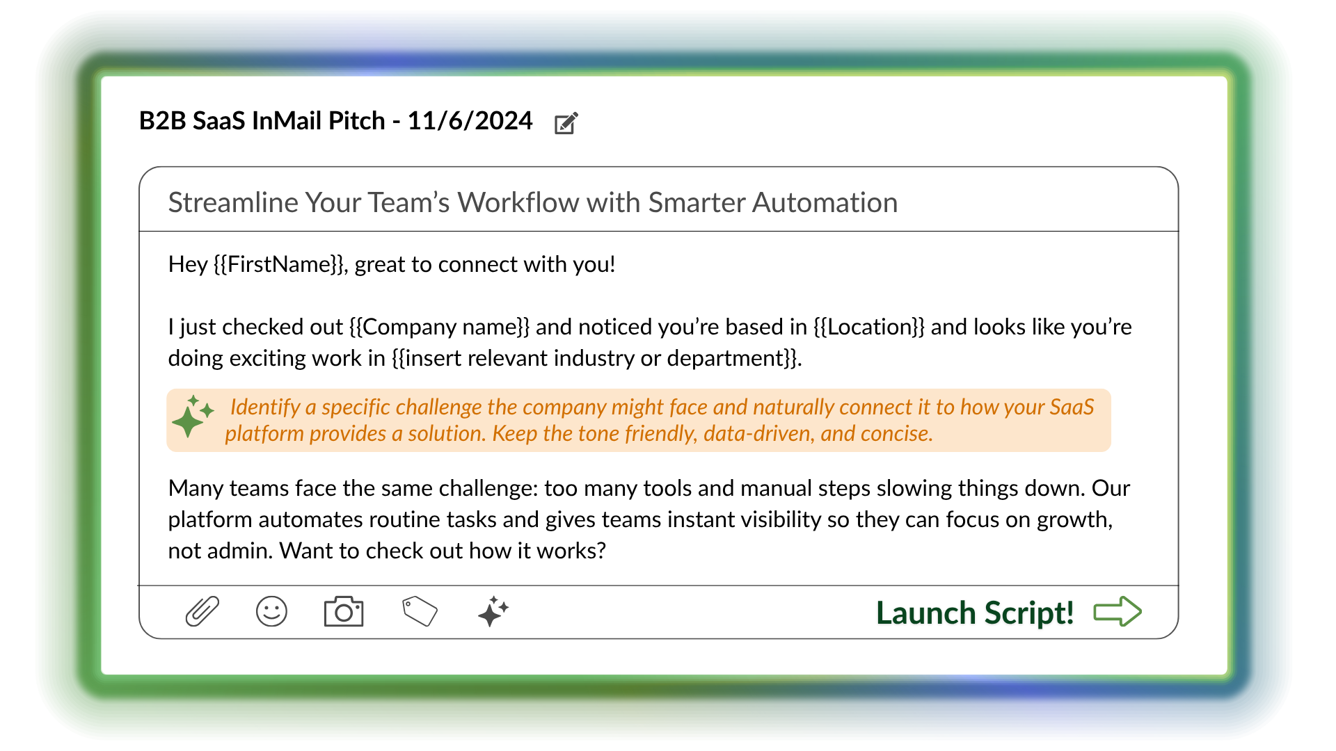 Our customizable outreach messaging framework ensures your cold email copy and LinkedIn prospecting messages fit your voice and resonate with your ideal customer profile, maximizing engagement and response rates.