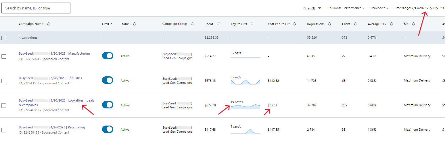 19 leads at $35 CPL in 7 days for SaaS business