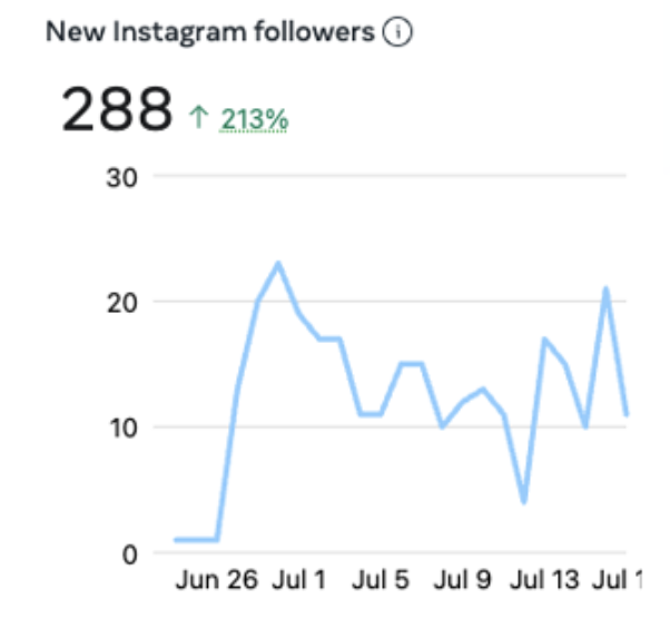 With just one "bigger" giveaway running for just 3 weeks, we were able to bring in 288 new Instagram followers to their IG page. This brought their total followers up to 1,164.